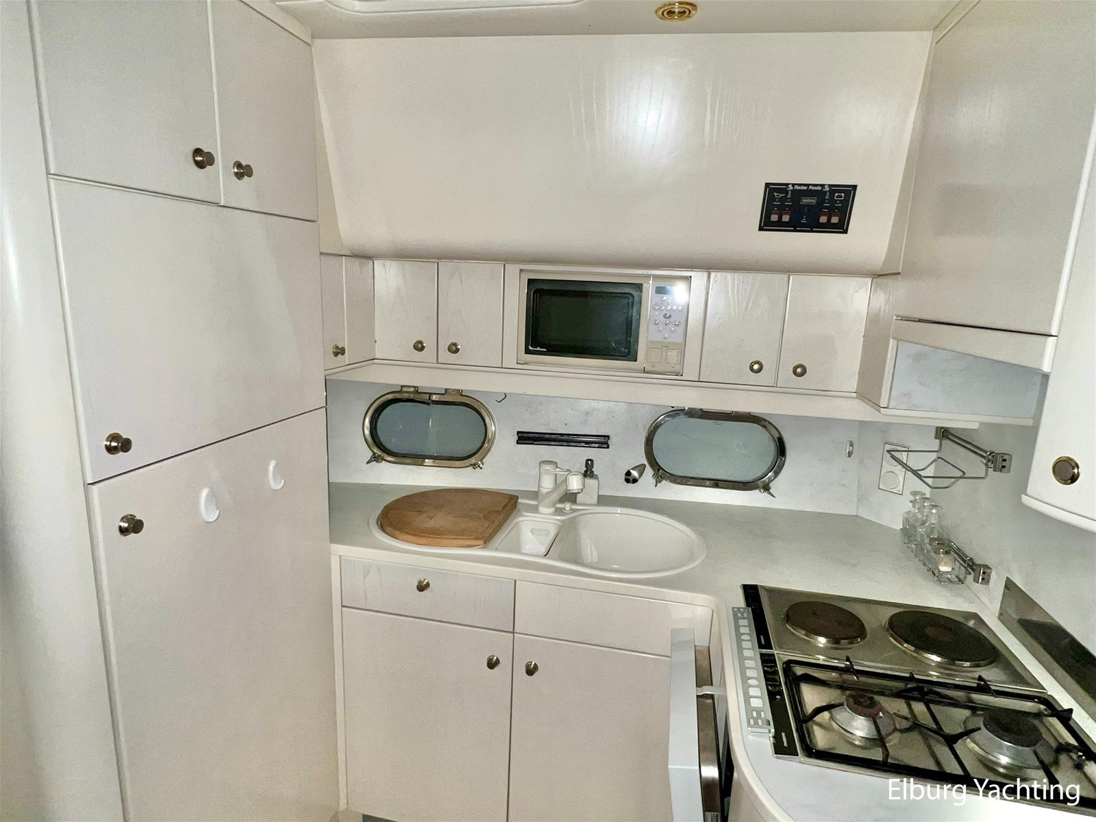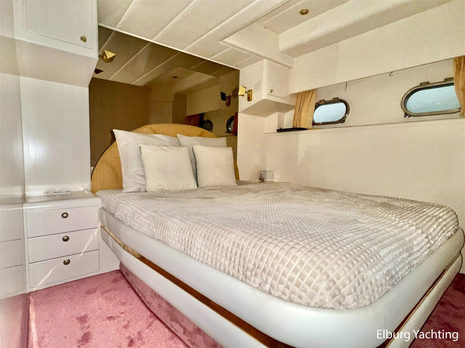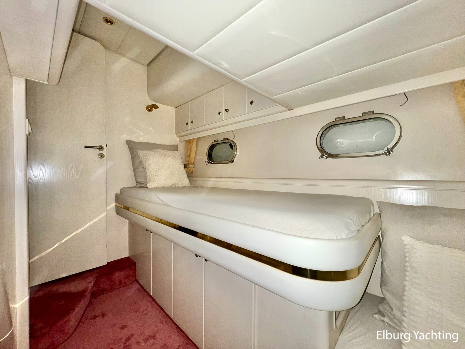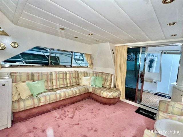 Deze ruime en sportieve Neptunus 156 verkeert in nette staat voor zijn leeftijd en wordt verkocht door de eerste eigenaar. Het jacht beschikt over drie hutten voor minimaal 6 opvarenden en heeft twee aparte badkamers. De open kuip en de salon zijn gelijkvloers met elkaar verbonden. Een complete tent dekt de open kuip af met grote zichtvensters. Via een vaste trap in de kuip krijg je krijg je toegang tot de riante flybridge met een U-vormige zitbank. De stuurstand heeft een 2-persoons vaarbank en biedt een overzichtelijke dashboard met alle benodigde apparatuur waaronder een vernieuwde Raymarine Axiom Pro 9 S plotter. De salon wordt betreden via een afsluitbare r.v.s. schuifpui. Een riante L-bank met twee geïntegreerde fauteuils bieden veel zit comfort. Er zijn veel opbergmogelijkheden in banken en kasten. De dinette bevindt zich tegen over de stuurstand waardoor de gehele crew op vaarhoogte kan meekijken. Benedendeks bevind zich de kombuis met een koelkast / vriezer / magnetron / vaatwasser / kookplaat en spoelbak. Aan SB-zijde bevind zich een 2 x 1-persoons gastenhut en aan BB-zijde een 1 x 2 persoons hut met frans bed. De gasten badkamer bevind zich midscheeps en is vrij toegankelijk. In het voorschip bevind zich de eigenaarshut met een 1 x 2 persoons bed met badkamer en-suite. Onder het bed van de voorhut bevind zich een ruime berging. Via een breed luik in de kuipvloer wordt het achterschip betreden. In het achterschip bevind zich opbergruimte, zowel een wasmachine als droger, de generator en nog verdere techniek. Via het achterschip is er een doorloop naar de machinekamer. De bakboordmotor is in de winter van 2023-2024 vervangen, rekeningen van deze werkzaamheden zijn beschikbaar. Deze Neptunus 156 is verder voorzien van: Afneembare kussens voor het achterdek, flybridge en voordek, bimini top over de flybridge, delen op de flybridge voorzien van afdekhoezen, r.v.s. fenderhouders, afsluitbare kuip met deur naar zwemplateau, buiten verlichting, 4 x schuifraam in salon voor ventilatie + 2 horren, muggenhorren voor patrijspoorten, afneembaar zonnescherm op voorruit, zijladder. Stahoogte in het interieur ca. 2 meter.