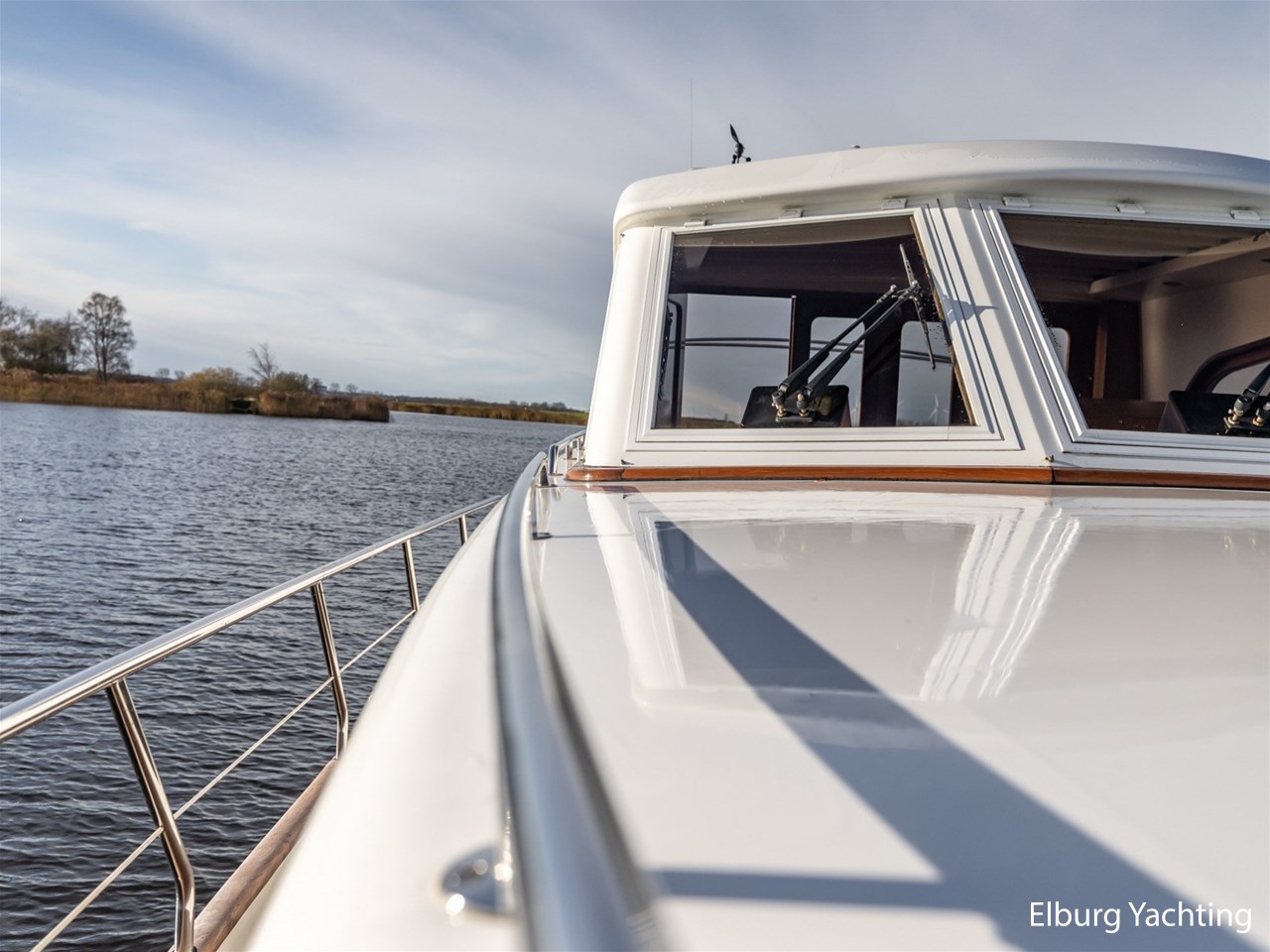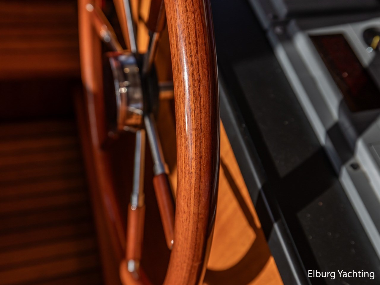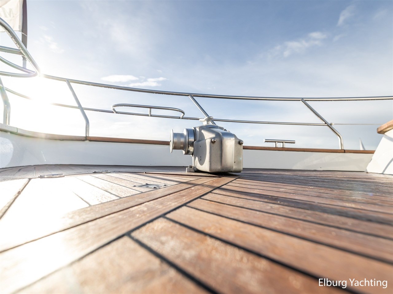 Het onderwaterschip is in diezelfde periode gestraald en behandeld met nieuwe antifouling. In 2023 is groot motoronderhoud uitgevoerd, inclusief de plaatsing van twee nieuwe turbo’s. In 2024 is aanvullende service aan de motoren uitgevoerd. Het jacht is voorzien van schroefassen en vierblads schroeven. De generator is in mei 2025 geserviced. De kruissnelheid bedraagt ca. 8 knopen bij 2500 rpm, met een maximale snelheid van ca. 11 knopen bij 3300 rpm. De economische vaarsnelheid ligt rond de ca. 7 knopen bij 2200 rpm. Qua uitrusting is het jacht voorzien van een uitgebreid en recent vernieuwd Raymarine-navigatiesysteem met onder andere twee Axiom 12” displays, radar, AIS, GPS, autopilot met afstandsbediening, VHF, windmeter en een camera op de radarboog. In 2023-2024 is er een nieuwe hekschroef met afstandsbediening aangebracht, naast de bestaande boegschroef. De kussens op het voordek zijn aanwezig en in 2023-2024 vernieuwd. Verder is het jacht uitgerust met RVS fenderhouders en een zoeklicht. Volledige documentatie van de werkzaamheden is op aanvraag beschikbaar.