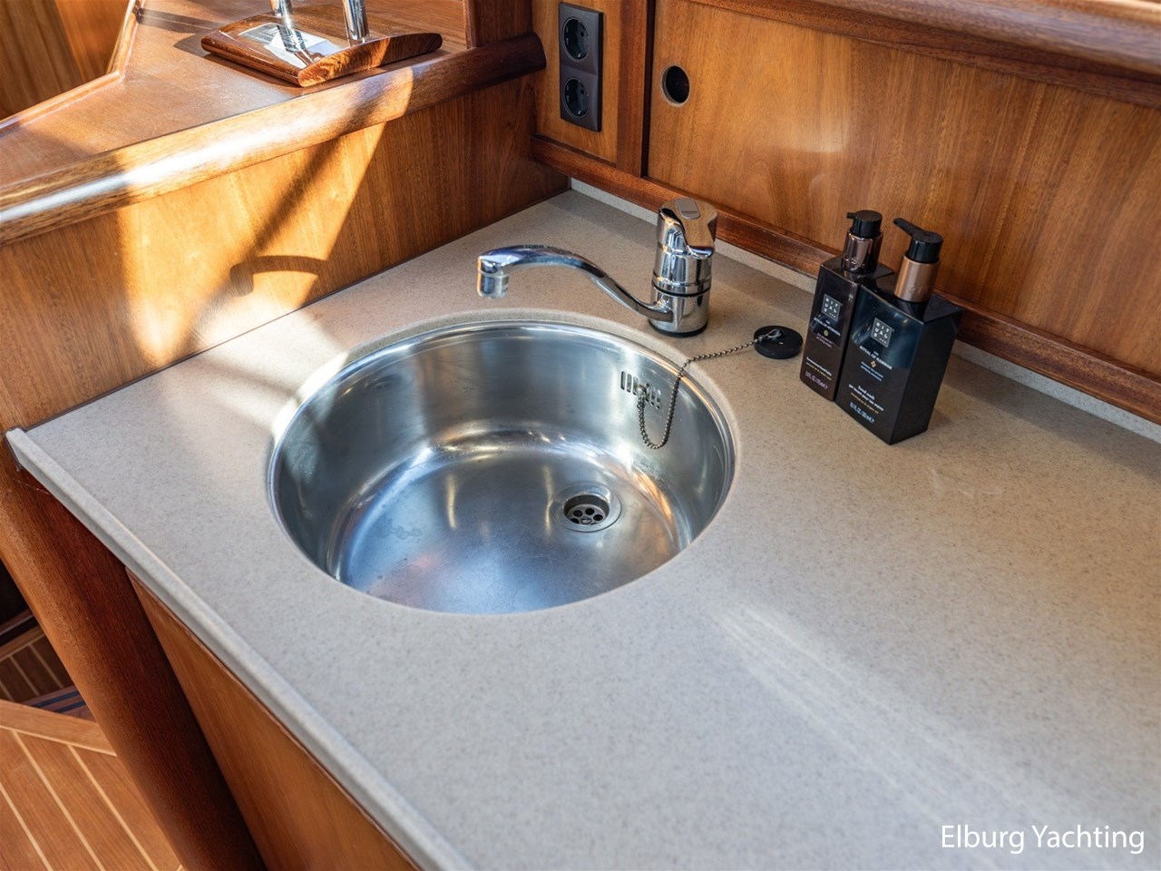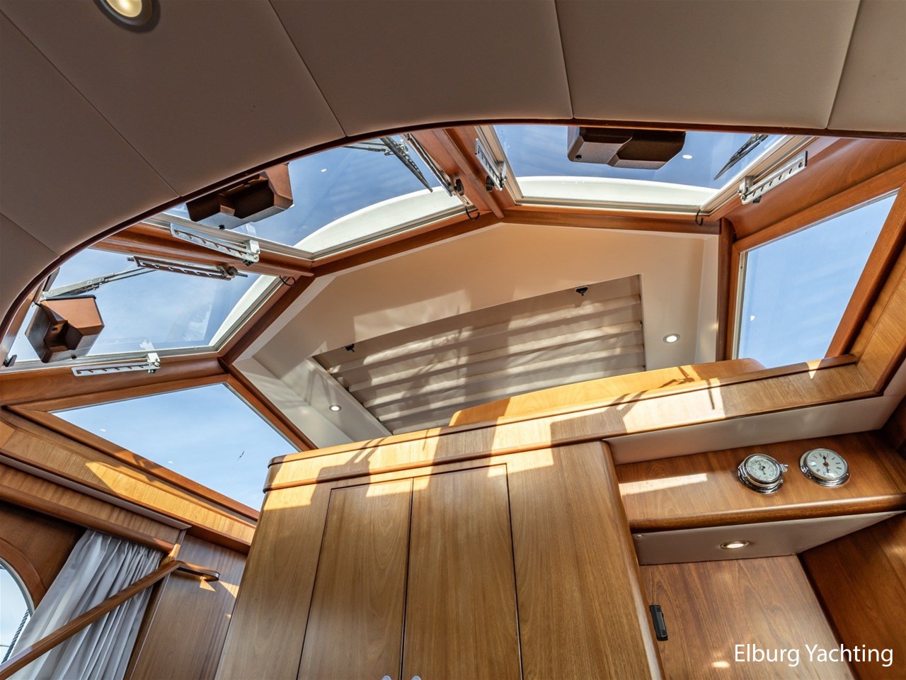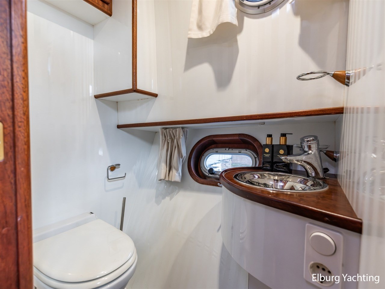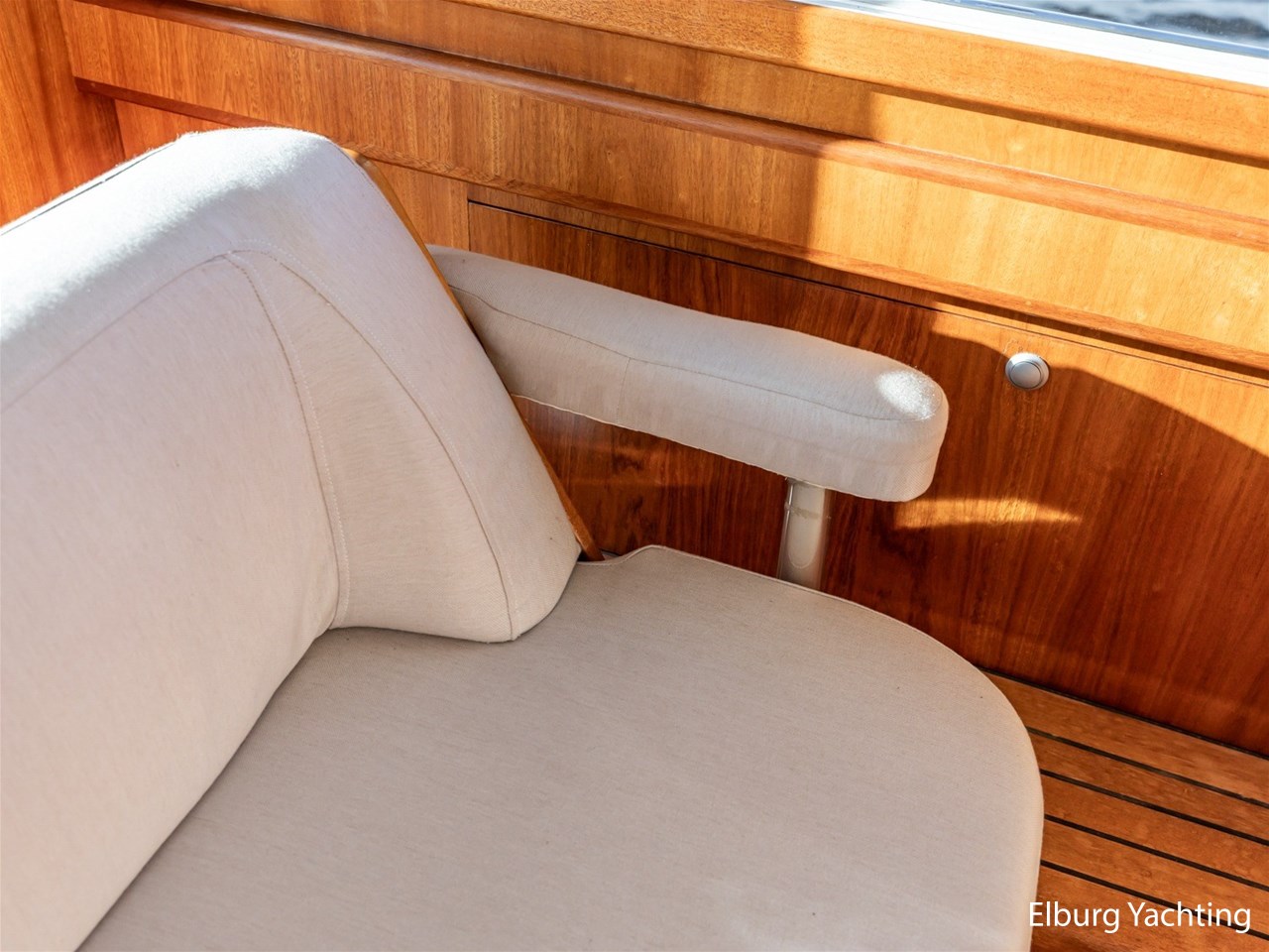 Het onderwaterschip is in diezelfde periode gestraald en behandeld met nieuwe antifouling. In 2023 is groot motoronderhoud uitgevoerd, inclusief de plaatsing van twee nieuwe turbo’s. In 2024 is aanvullende service aan de motoren uitgevoerd. Het jacht is voorzien van schroefassen en vierblads schroeven. De generator is in mei 2025 geserviced. De kruissnelheid bedraagt ca. 8 knopen bij 2500 rpm, met een maximale snelheid van ca. 11 knopen bij 3300 rpm. De economische vaarsnelheid ligt rond de ca. 7 knopen bij 2200 rpm. Qua uitrusting is het jacht voorzien van een uitgebreid en recent vernieuwd Raymarine-navigatiesysteem met onder andere twee Axiom 12” displays, radar, AIS, GPS, autopilot met afstandsbediening, VHF, windmeter en een camera op de radarboog. In 2023-2024 is er een nieuwe hekschroef met afstandsbediening aangebracht, naast de bestaande boegschroef. De kussens op het voordek zijn aanwezig en in 2023-2024 vernieuwd. Verder is het jacht uitgerust met RVS fenderhouders en een zoeklicht. Volledige documentatie van de werkzaamheden is op aanvraag beschikbaar.