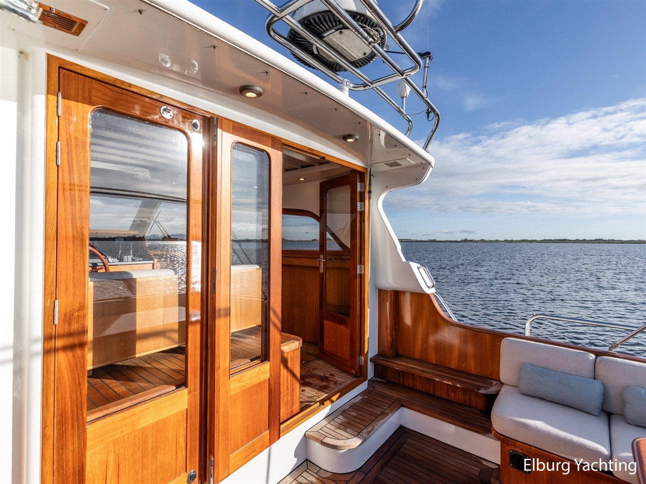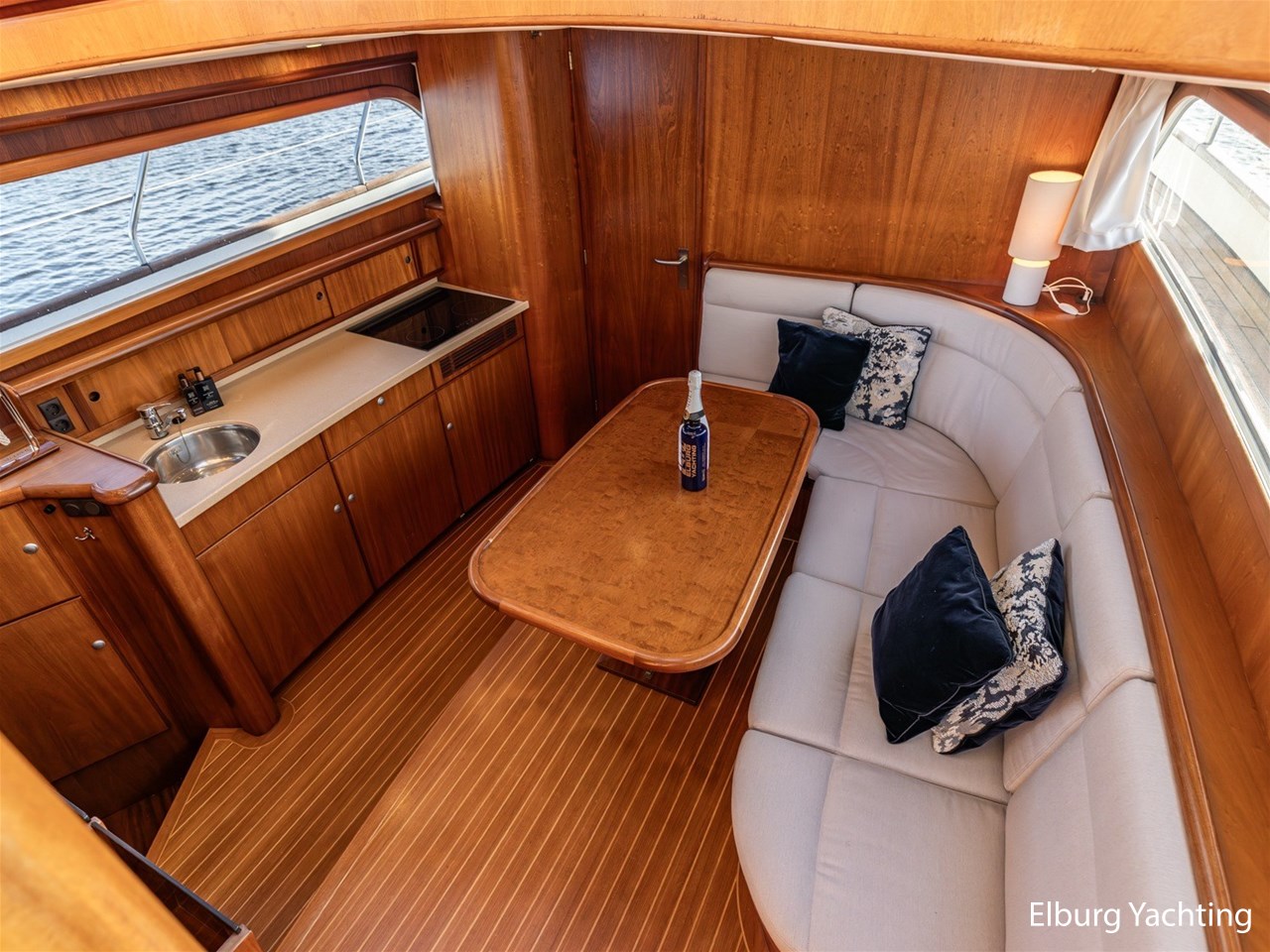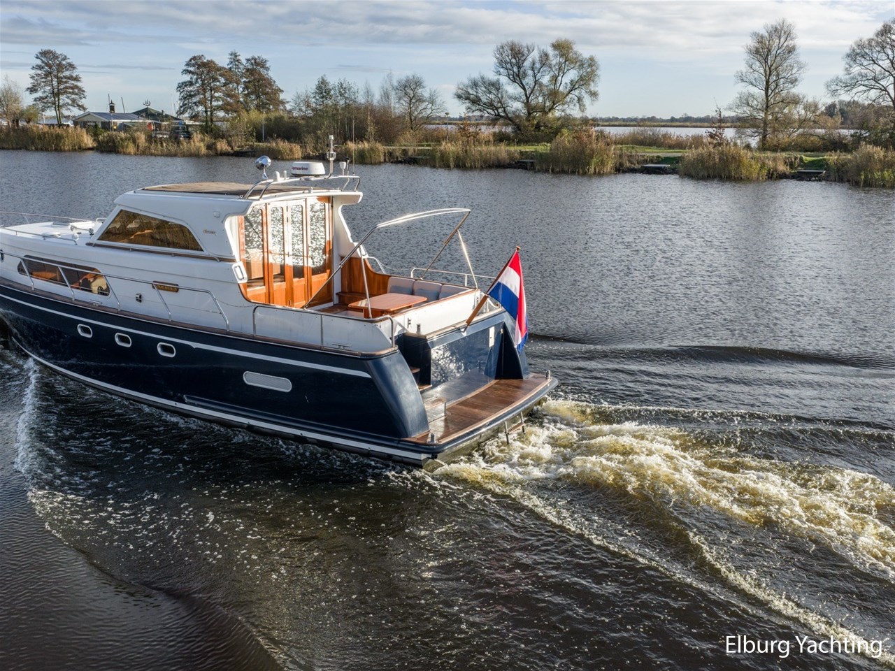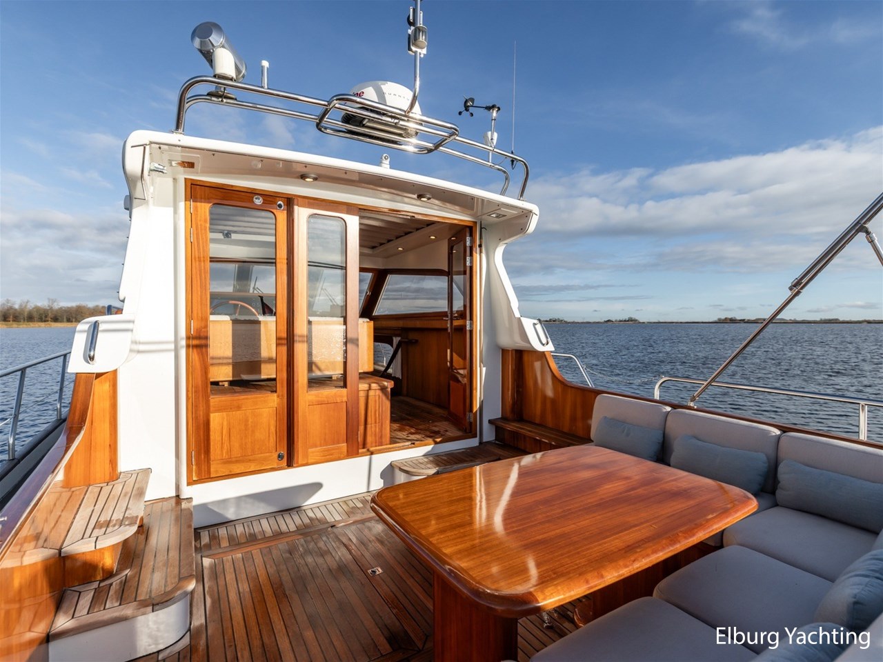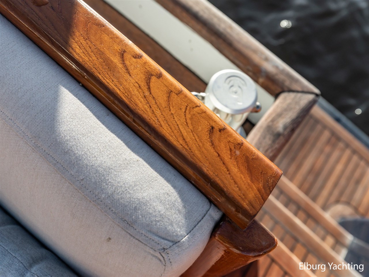 De Mulder Favorite 46 is een elegant en degelijk motorjacht, ontworpen door Guido de Groot en gebouwd door de gerenommeerde werf Mulder Shipyard. Dit jacht straalt tijdloze klasse uit en is ontworpen voor comfortabel en stijlvol verblijf aan boord. De ruime open kuip staat in directe verbinding met de salon en het stuurhuis, wat zorgt voor een open en lichte leefruimte. Het interieur is klassiek uitgevoerd in mahoniehout en voorzien van lichte, recent vernieuwde stoffering. Dankzij de twee hutten, elk met eigen sanitair, is het schip uitstekend geschikt voor langer verblijf aan boord. Tussen 2021 en 2025 is er breed geïnvesteerd in techniek, afwerking en uitrusting. Het teakdek is in 2023-2024 volledig vernieuwd door Jonker Jachtbouw.