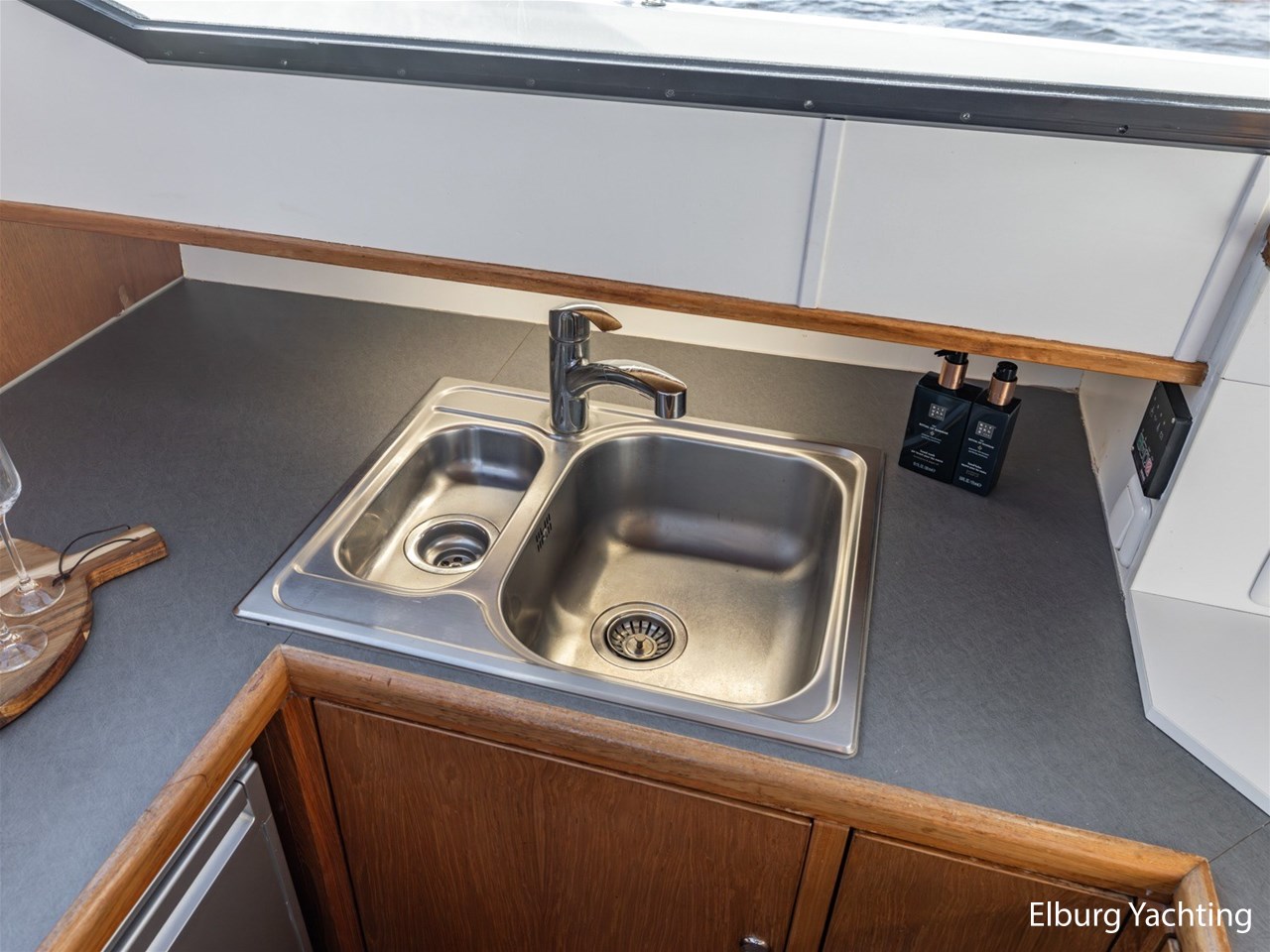 Het jacht is daarnaast uitgevoerd met: Vetus airconditioning in salon, extra stevige r.v.s. reling,4 x houten (openslaande) deuren naar open kuip, deur in verschansing naar zwemplateau, geïntegreerde bakskisten met teakhouten deksel, grote verwarmde (d.m.v. radiator) opbergruimte onder de kuip, dekwaspomp, lederen bekleding, dubbele r.v.s. stootlijst, vlucht/ventilatie luik, luxe vaarstoel (met leer bekleedt), Mastervolt Mass inverter/charger Control, r.v.s. bolders en kikkers gemonteerd op r.v.s. platen, Bosch was/droger combinatie, zelflozende kuip, kuiptent, klapbare radarbeugel, laminaat vloer in salon, traanplaten in machinekamer, dubbele wierfilters, dubbele brandstoffilters, het jacht heeft een zeer ruime beschutte kuip + zeer ruime salon. Door de 4 klapdeuren ontstaat er een zeer gezellige ruimte als geheel.