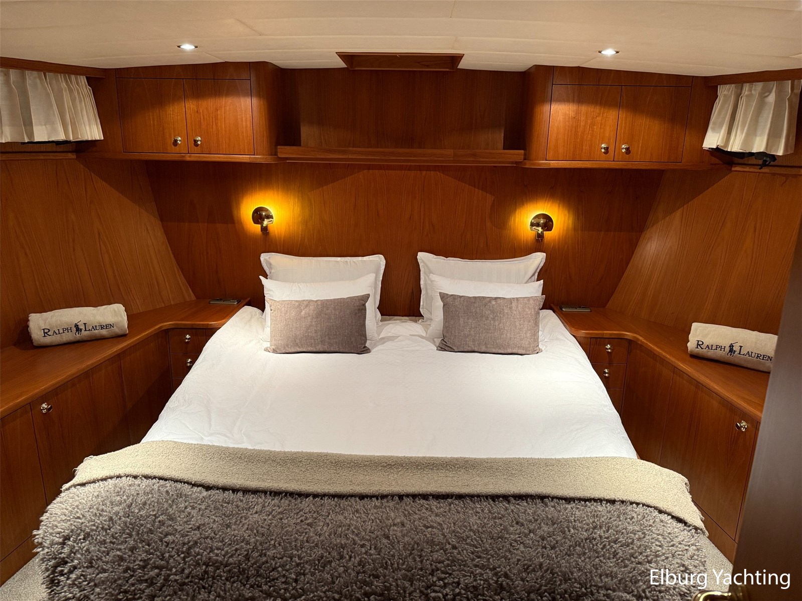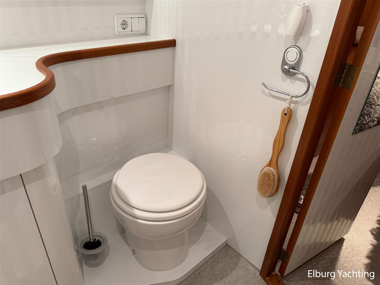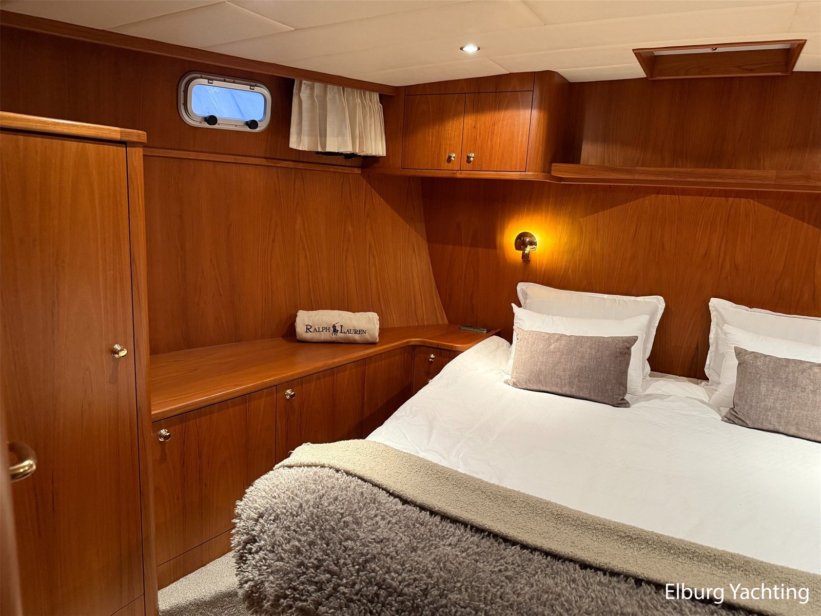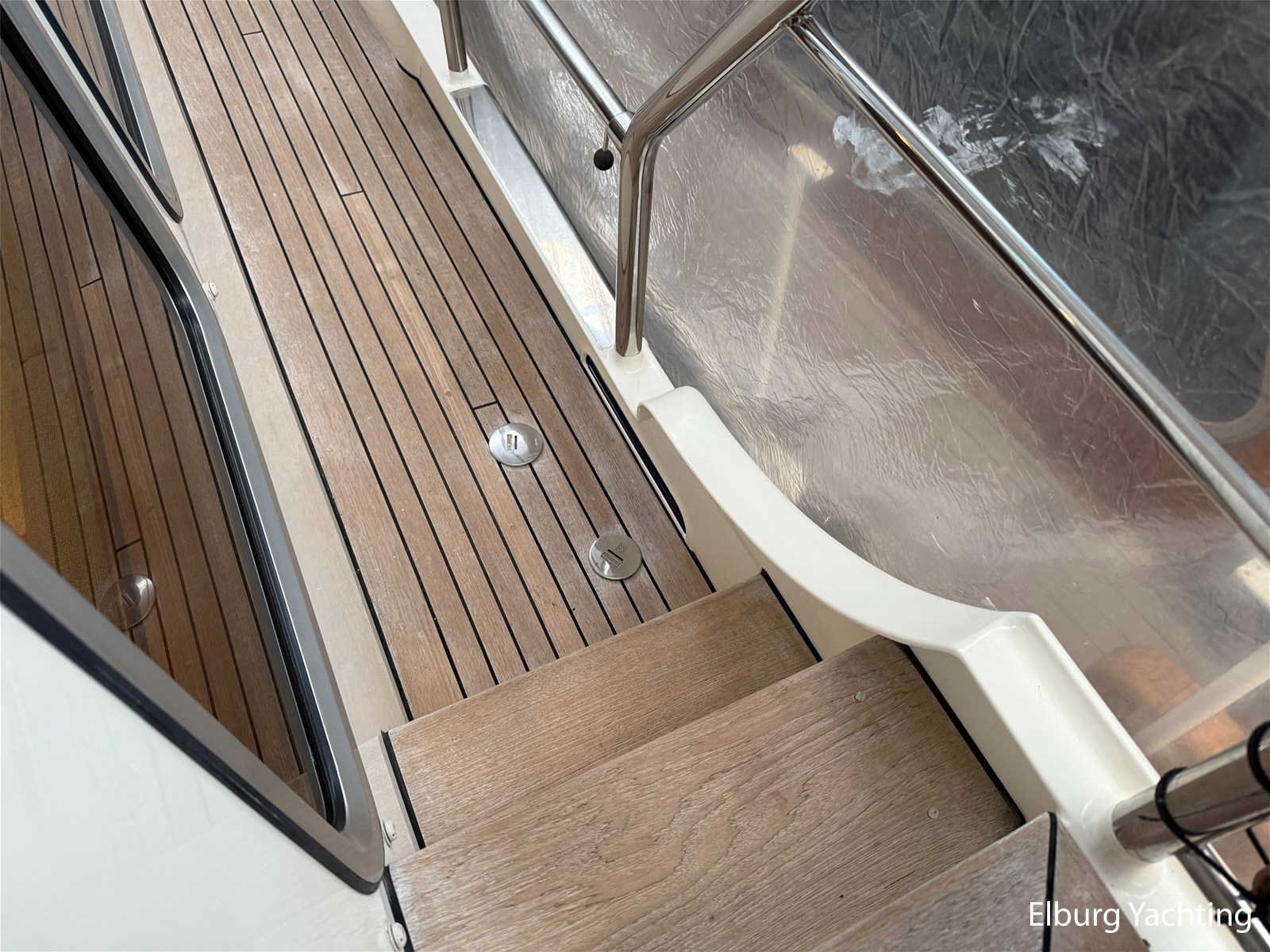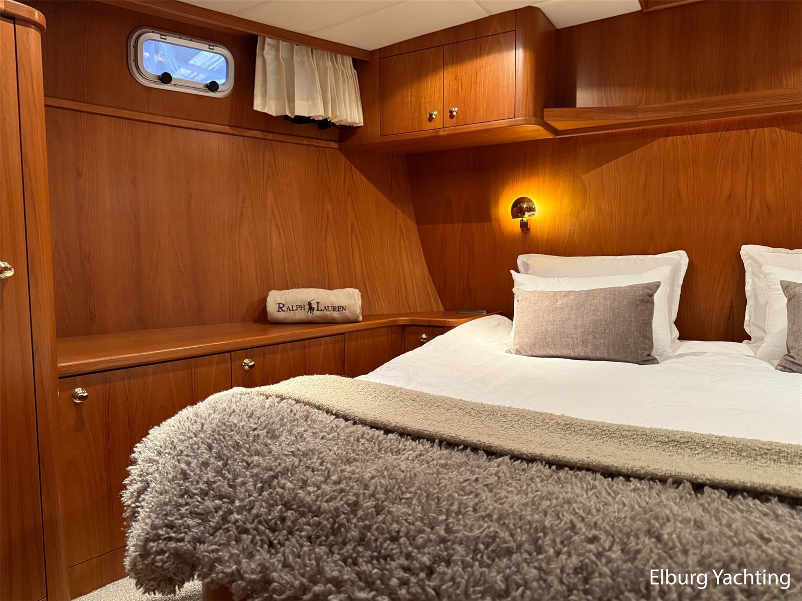 - Hoogwaardig Teakhouten interieur met ronde afwerking en nieuwe grijze stoffering (2024)