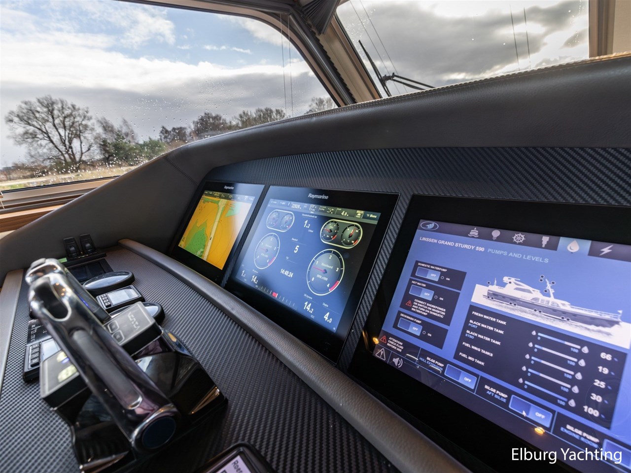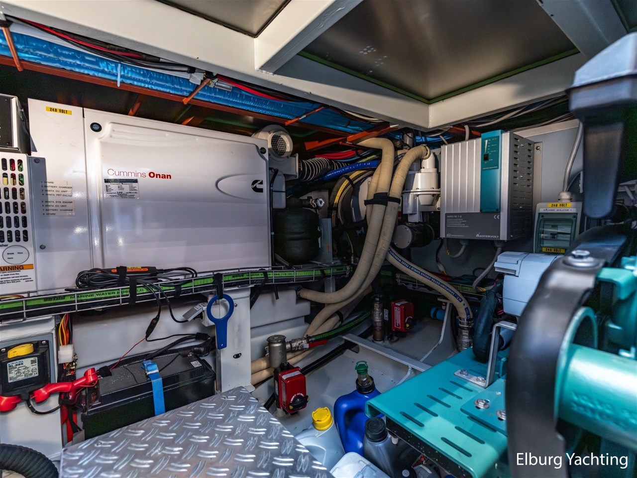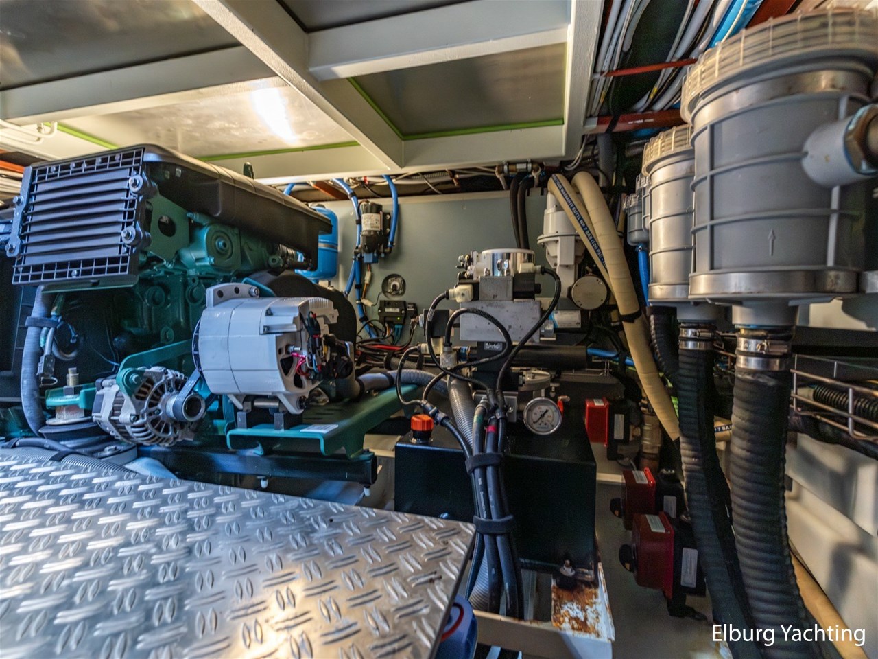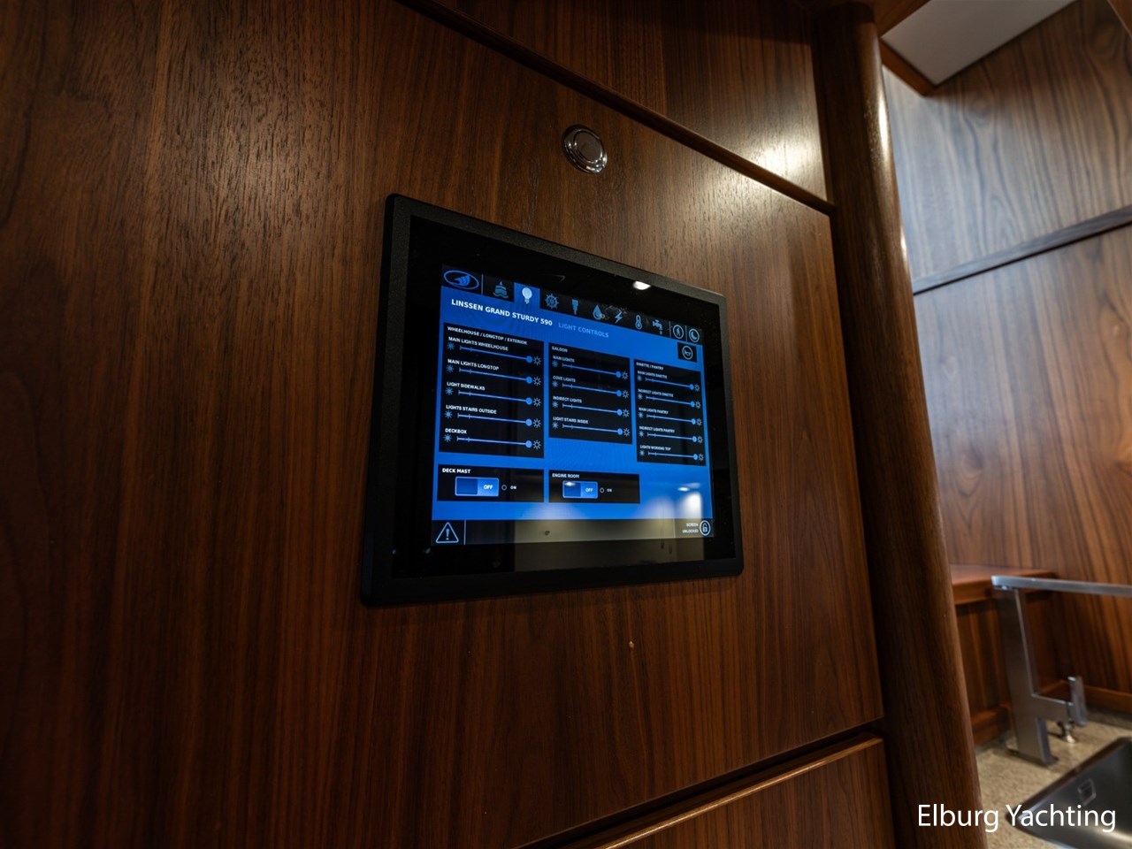 Deze Linssen Grand Stury 590 Variotop is uitgevoerd met: 2 x Spudpalen tot maximaal 4.20m onder het schip, Opacmare hydraulische kraan om bijboot te liften, Xenta dynamic positioning voor het behoud van zijn positie tijdens het stil liggen/wachten op het water, trolling valves, MagnusMaster stabilisatiesysteem, muggenhorren rondom, stahoogte door gehele boot ca. 2.00 m een extra kinderbed in 3e hut, 2 x TV met elektrische lift en DVB-T en DVB-S ontvanger, Raymarine STV60 satellietsysteem, Fusion audio installatie met afstandsbediening en buitenspeakers ook te bedienen via Raymarine plotter, AEG was-droog combinatie, Siemens vaatwasser, indirecte verlichting op achterdek, dubbele Alpha pro 24/75A dynamo's. Het Canbus elektra systeem is te bedienen via de Yachtcontrol bedieningsschermen in de salon / kombuis / stuurhuis en tevens via een app op de tablet of smartphone, dimverlichting door het gehele jacht, Xenta motorbediening met toerental synchronisatie, Xenta joystick bediening voor eenvoudig afmeren (bedient beide motoren, roeren en boeg- en hekschroef), op iedere motor dubbele omschakelbare brandstoffilters, elektrische kogelkranen voor koelwater, Raymarine i70 windmeter met Airmar 150 WX weerstation, Raymarine roerstandaanwijzer, Raymarine AIS, 5x camera's rondom de boot met afstandsbediening, zoeklicht, WIFI antenne met router, elektrisch verstelbare tafel op achterdek, zijtrap om makkelijk aan/van boord te gaan bij zijsteigers, boegdoorgang in reling, wegklapbare fenderkorven voor en achter, elektrische verhaallieren op achterdek met voetbediening. De minimale doorvaarthoogte is 4,70m.