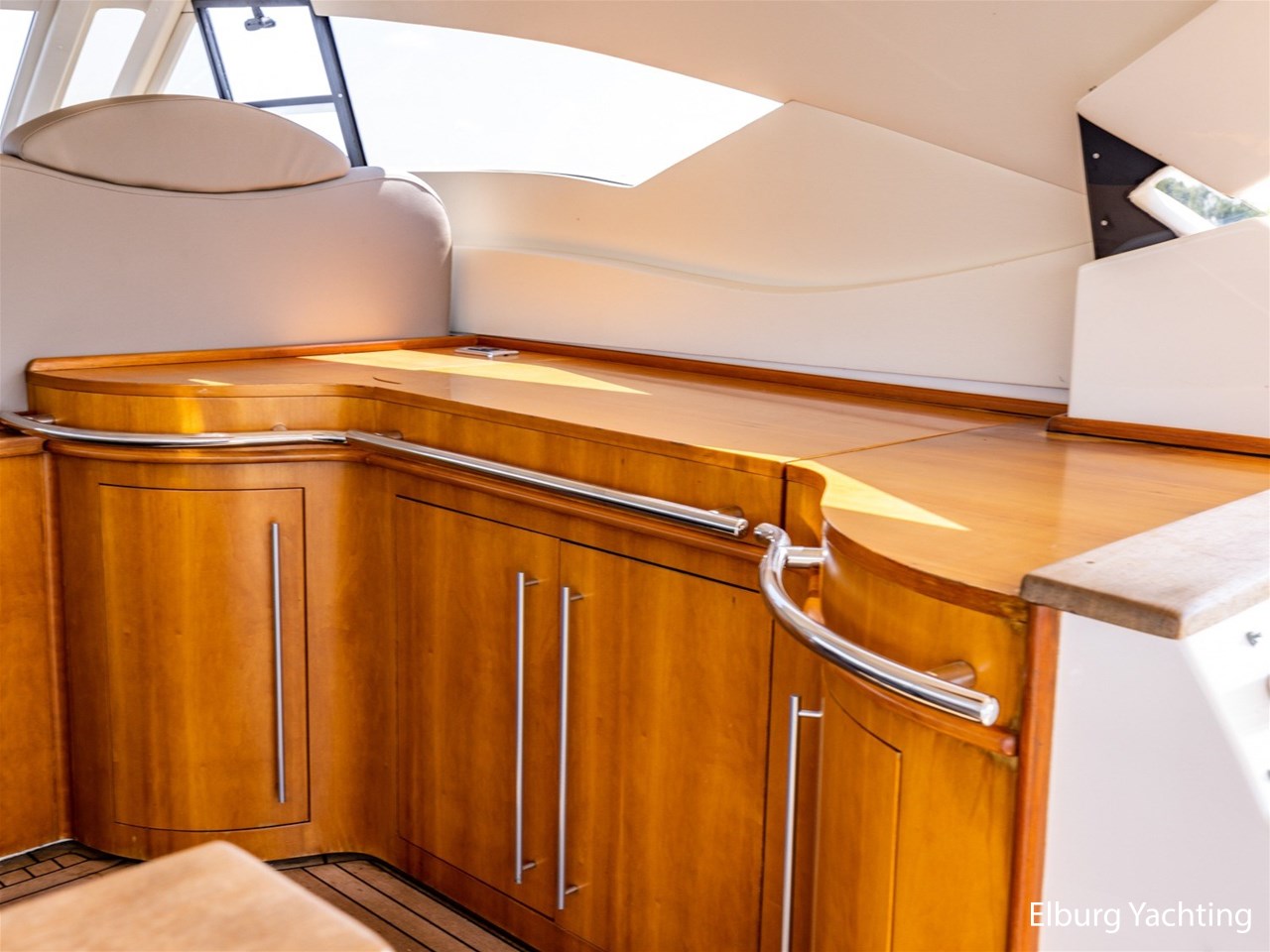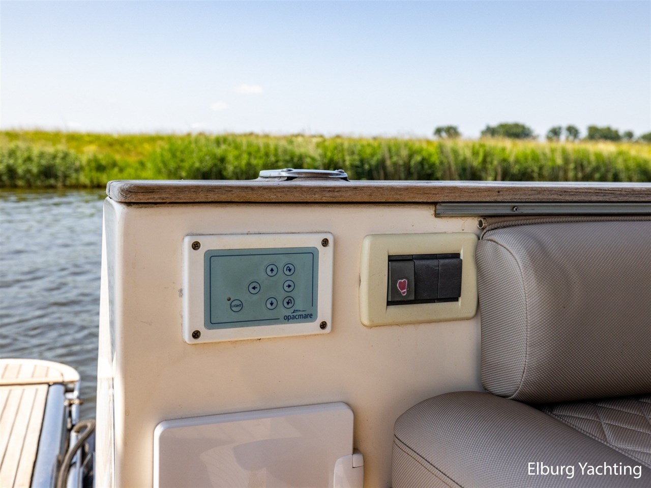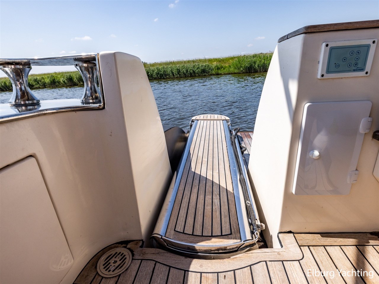 - Antislip op zijdek + teak in open kuip en stuurhuis