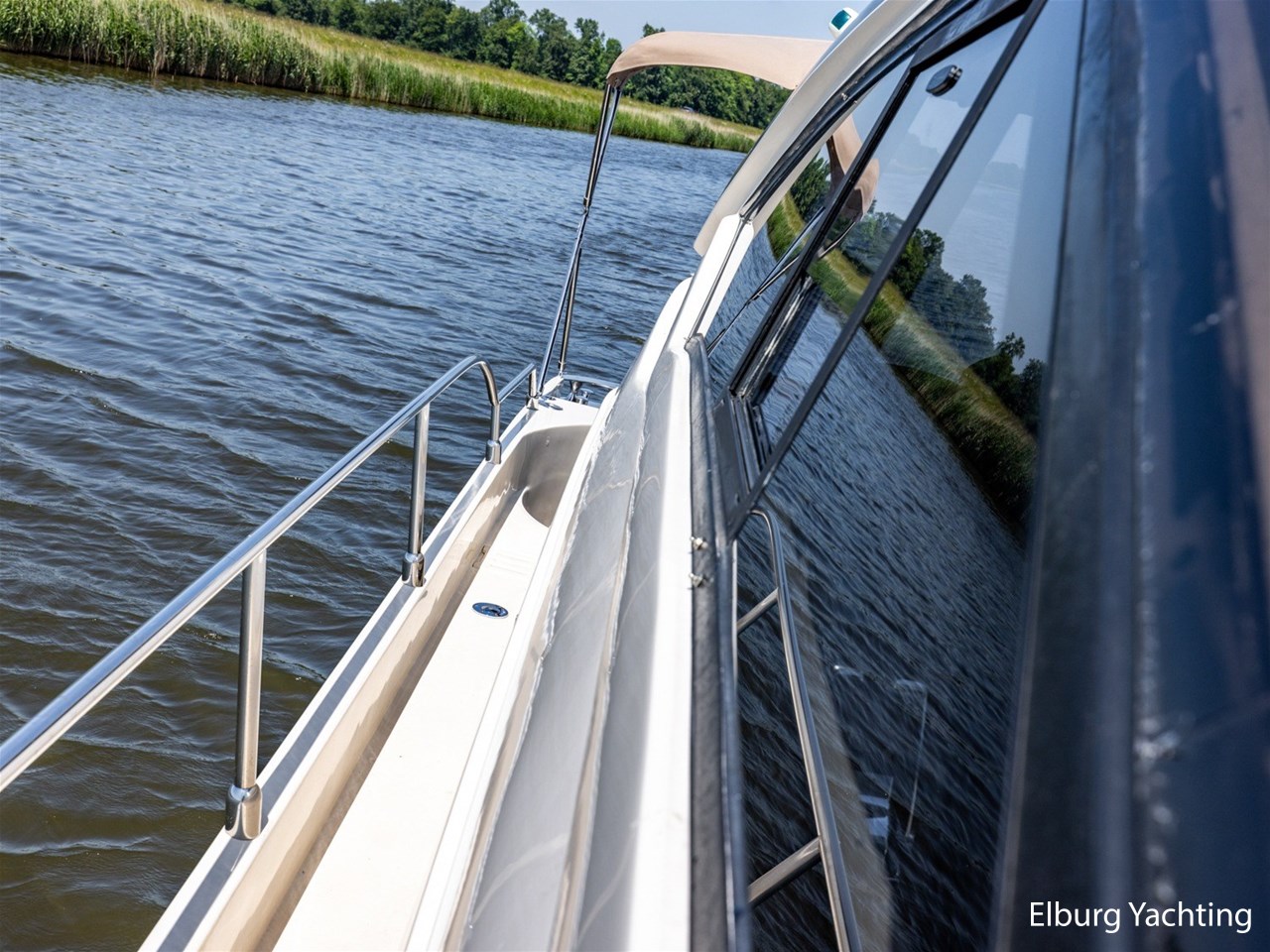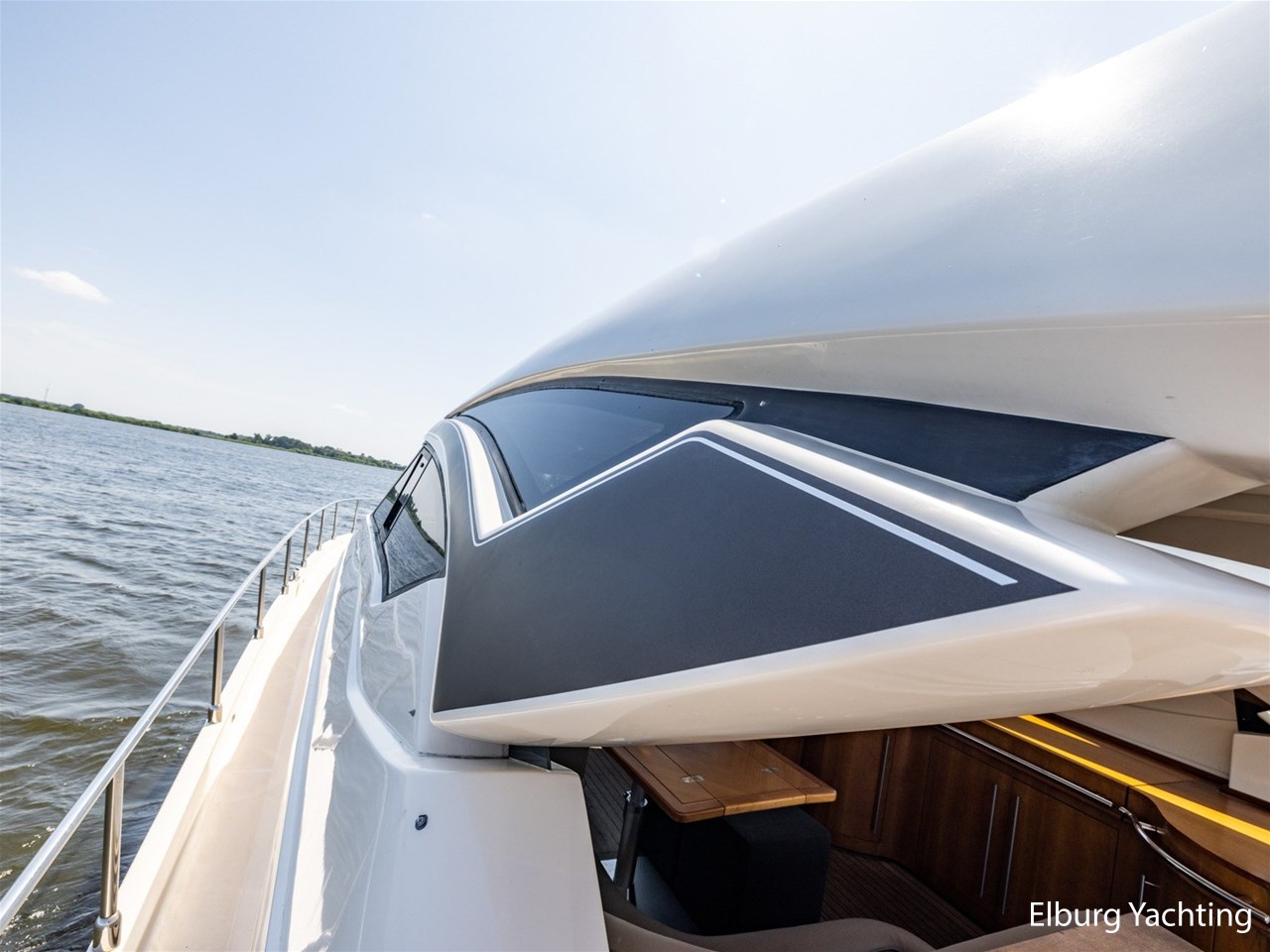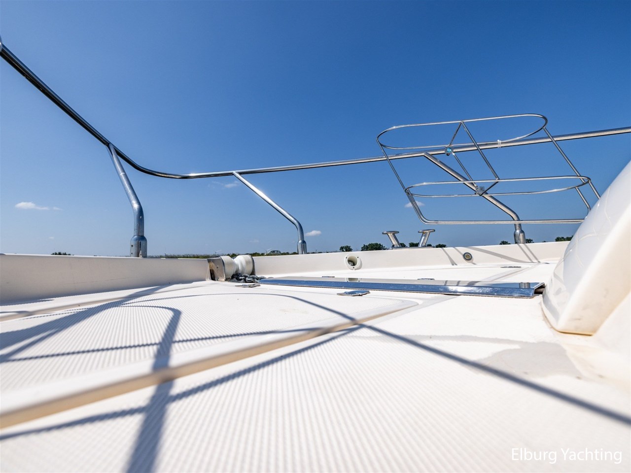 - Antislip op zijdek + teak in open kuip en stuurhuis