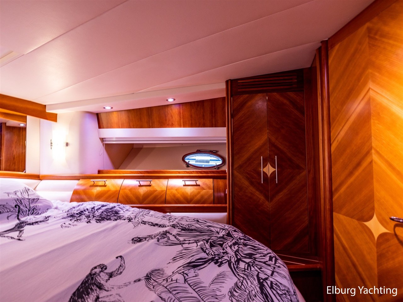 De Cayman 52 Hardtop is een echte sportieve allrounder. Het stuurhuis is volledig af te sluiten met een tent of hor. De stuurstand, wetbar met spoelbak, grill en koelkast, en de ruime U-vormige zitbank bevinden zich allemaal op één niveau. Dankzij het grote elektrische schuifdak haal je het buitengevoel echt naar binnen. De open kuip is ruim opgezet met een vaste bank inclusief bijbehorende kussens. Via een kuipluik is er toegang tot de technische ruimte met extra opbergmogelijkheden. Benedendeks bevinden zich maar liefst drie hutten met maximaal zes slaapplaatsen en twee separate toilet-/douchecabines. Deze Cayman 52 is uitgerust met o.a.: hydraulisch bedienbare gangway op het achterdek, bijbootbeugel en lanceerinstallatie, biminitop over het achterdek, kuipverlichting, r.v.s. fenderhouders, twee opbergluiken in het voordek, groot zonnebed voorop, hoge r.v.s. reling rondom, hoogwaardig houten Italiaans interieur, goed bereikbare techniek, tanks met mangaten, trimtabs, Philips HUE-verlichting in het interieur, en trawling mode (snelheidsbegrenzer bij stationair lopen). Verder is er recent een hekschroef geplaatst en zijn de lenspomp, het afdekzeil (2024) en de serviceaccu’s vernieuwd.