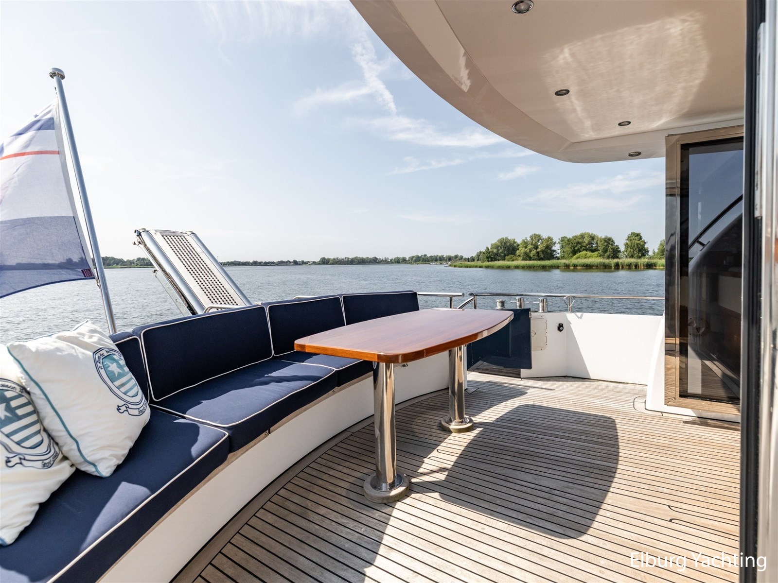 Ook buitenom is het comfort volledig doorgevoerd. Het schip beschikt over een teakdek rondom en een groot zwemplateau met geïntegreerde gangway en verlichting. Een luie trap vanaf het achterdek maakt de toegang tot het zwemplateau extra comfortabel.