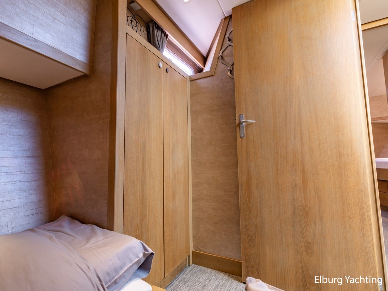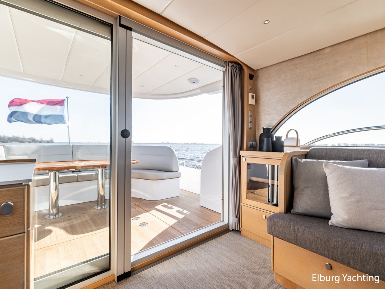 - Greywash eiken scheepsinterier + grijs stoffen bekleding