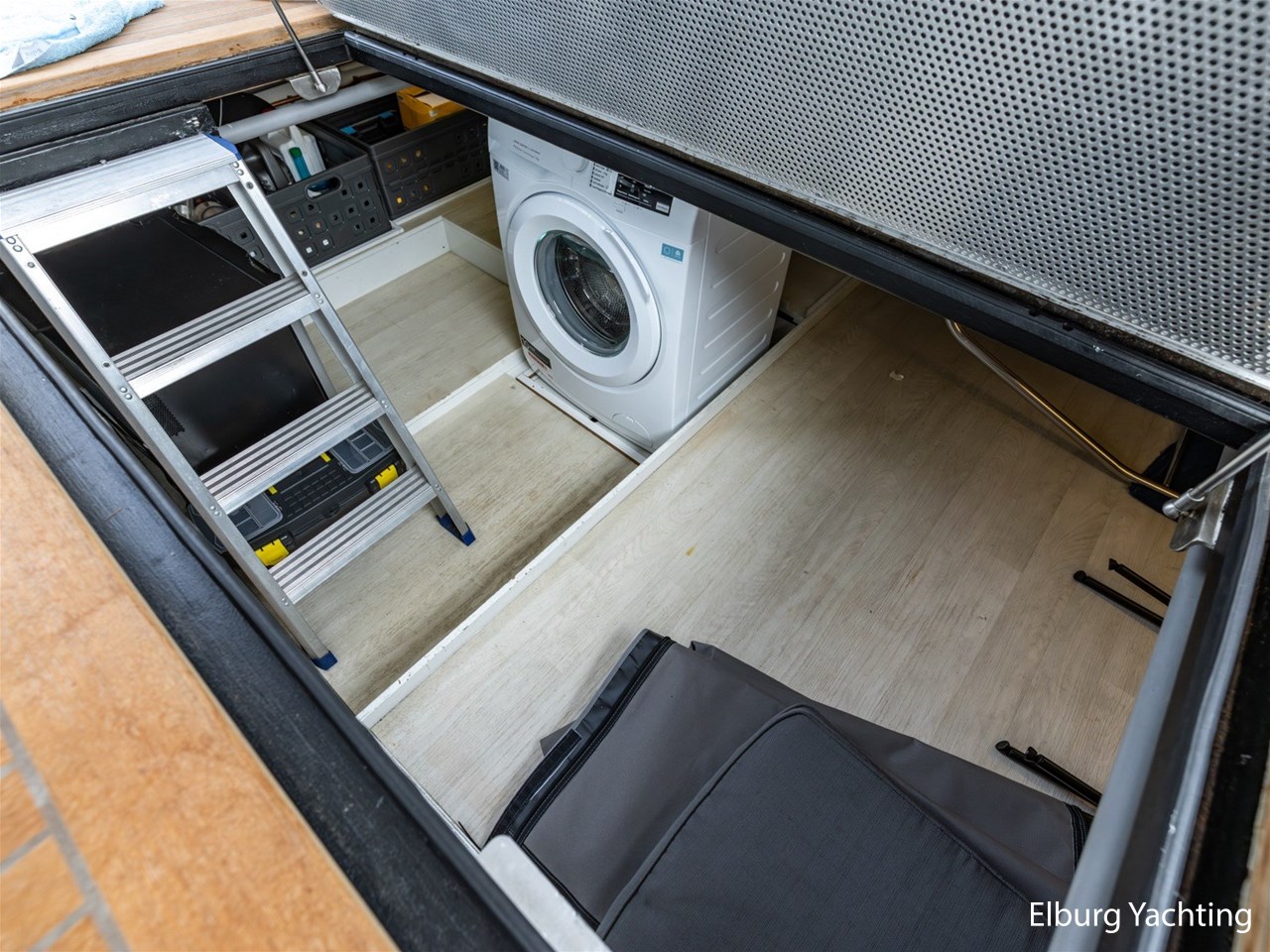 - Geïntegreerd met teak + toegang tot extra bergruimte