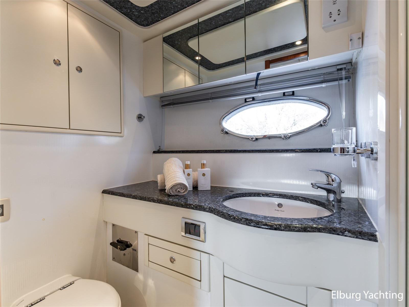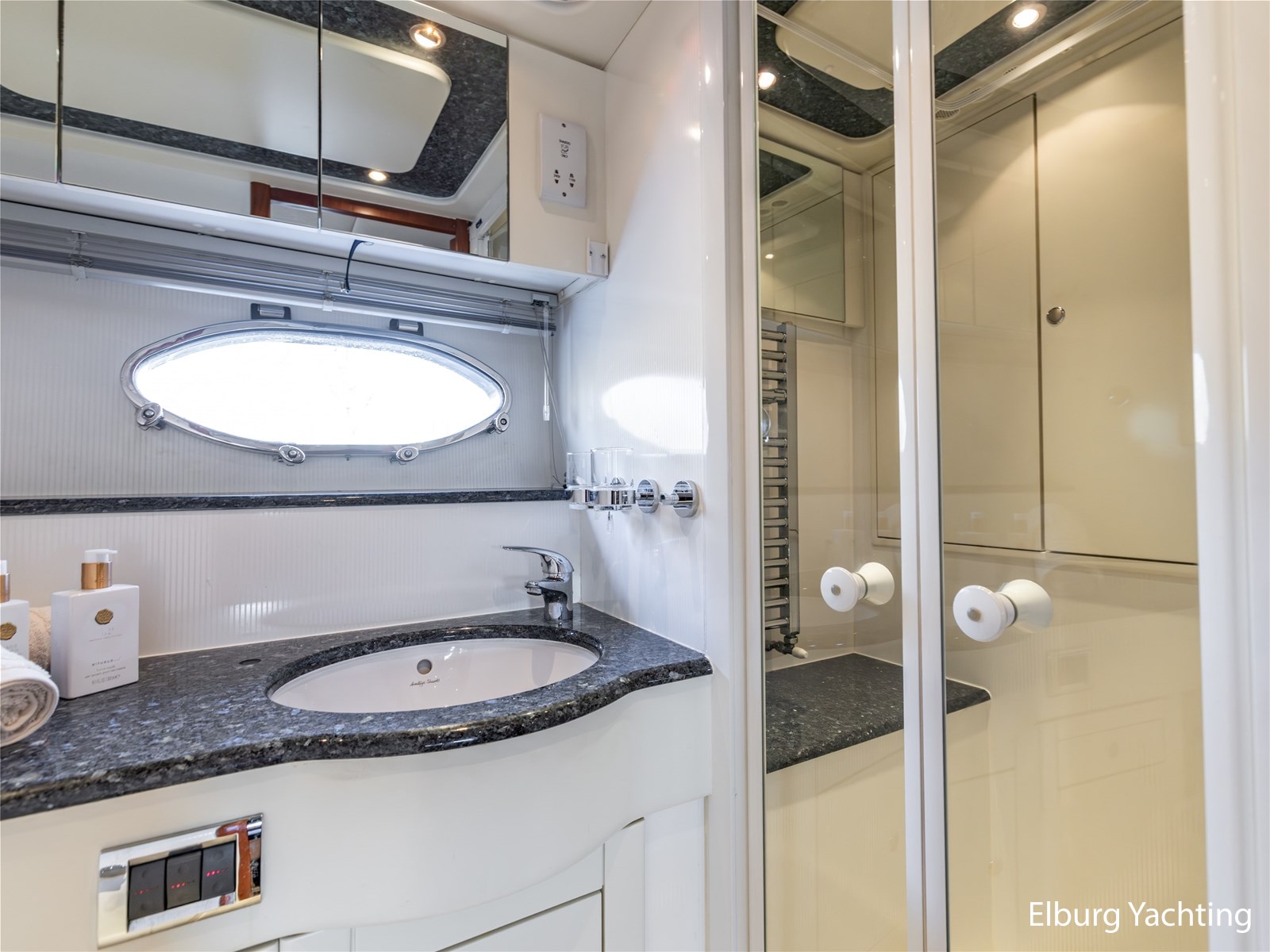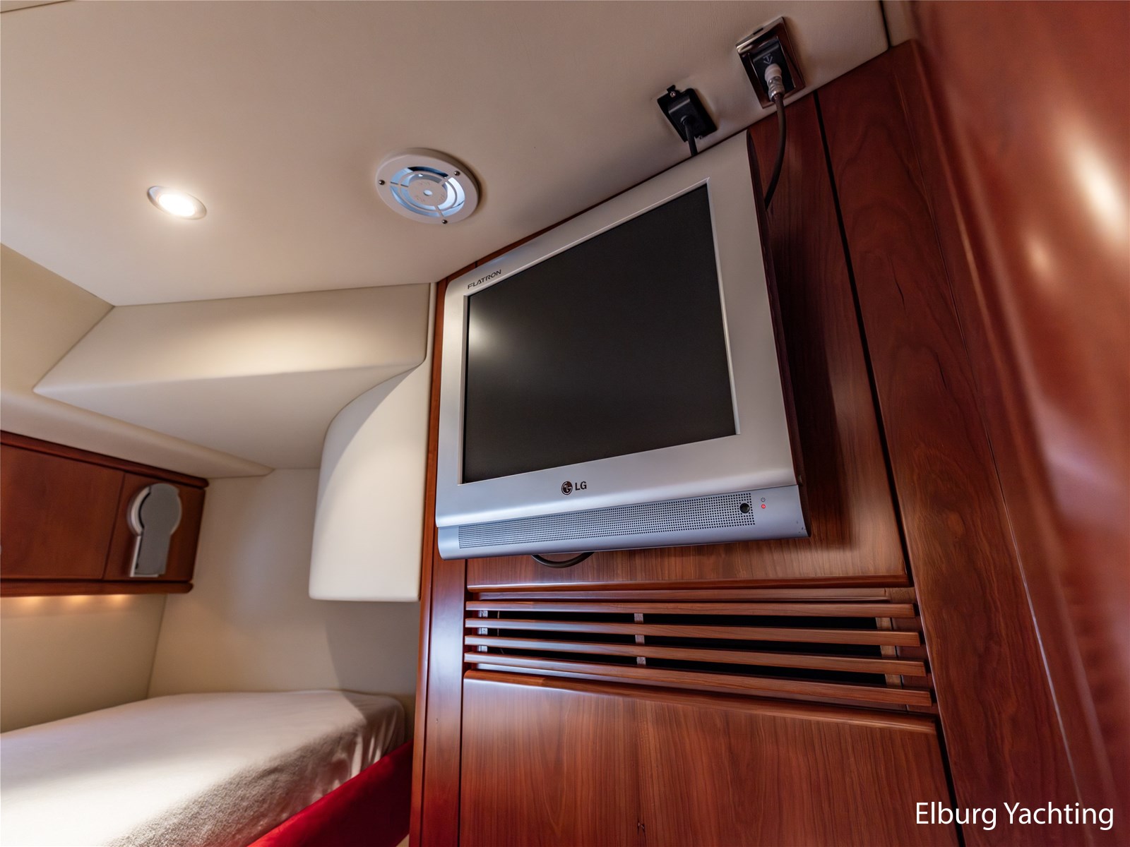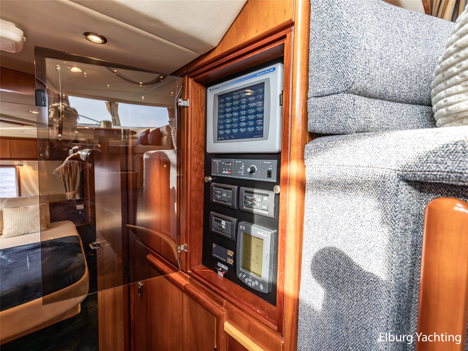 Rondom is het jacht voorzien van een prachtig Teakdek in combinatie met een driedubbel uitgevoerde r.v.s. zeereling. Aan beide zijden zijn relingpoortjes aangebracht met een comfortabele boegopstap waardoor het jacht ook bij de lagere steigers eenvoudig te betreden is. Het zwemplateau is eenvoudig te bereiken via de luie trap aan stuurboordzijde en een hydraulische gangway tevens is het zwemplateau voorzien van een Teakdek met steunen voor de bijboot, welke eenvoudig met de uitschuifbare gangway kunt kranen. Binnen is het jacht voorzien van een warm luxe Kersenhouten interieur met granieten werkbladen. De Kombuis is voorzien van Miele kwaliteitsapparatuur, het is aangenaam op temperatuur te krijgen via de Kabola centrale verwarming. Dimbare verlichting en 3 volwaardige hutten met 3 maal sanitair (3 x elektrische toiletten met 3 douches). Aan boord is de kastruimte goed doordacht en het interieur is prachtig afgewerkt.