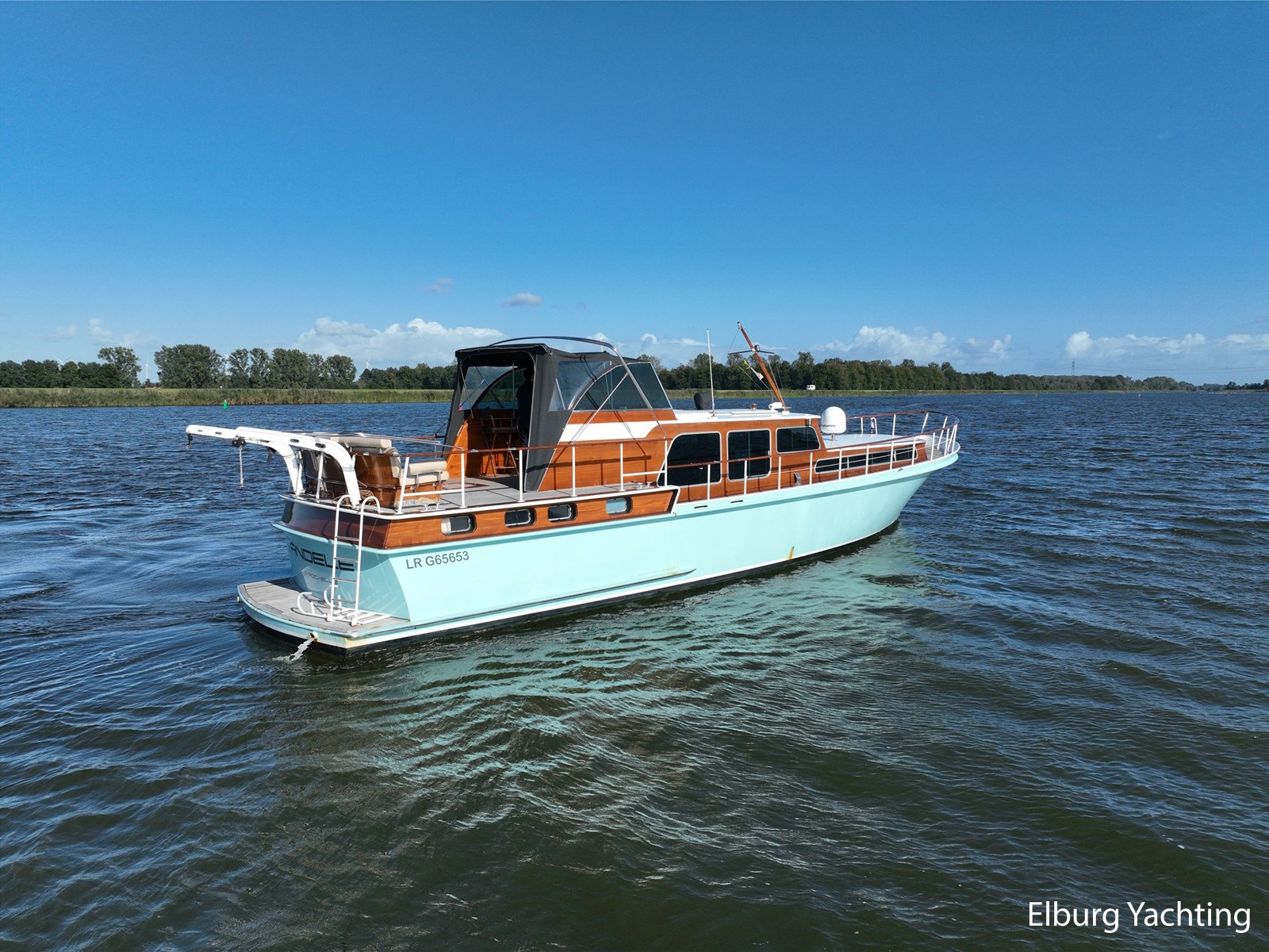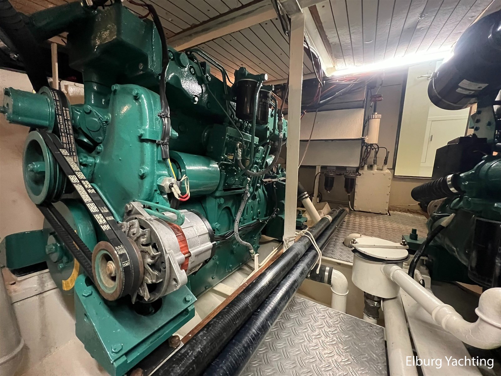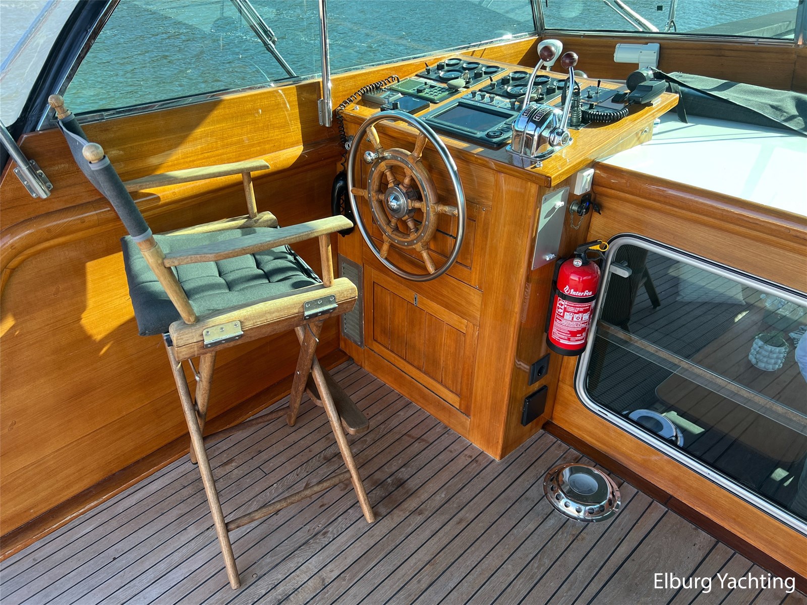 Deze bijzondere Super van Craft is met haar unieke kleurstelling een prachtige klassieke verschijning op het water. Het schip heeft een ruim achterdek met een grote (zomer) bimini en de mogelijkheid om beschut te varen achter de cabrio kap van de stuurstand. De salon is groot genoeg om naast de captain chair met ca. 6 personen plaats te nemen aan de tafel. De laatste jaren is er veel geïnvesteerd om deze Super van Craft weer in een mooie conditie te krijgen, maar er zijn nog klussen aan boord om af te ronden. Het schip is uitgevoerd met: Eigenaarshut met groot vrijstaand bed, grote bimini over achterdek, Sunbrella afdekhoezen voor o.a (bank op achterdek, loopplank, ankerlier), machinekamer geschilderd in 2022 + motoren geschilderd, dynamo's gereviseerd en nieuwe uitlaatdempers geplaatst in 2022, granieten aanrechtblad in keuken met Franke r.v.s. spoelbak, nieuw plafond in keuken met dimbare LED spots, Siemens vaatwasser, zwarte lamellen voor alle ramen in salon, vernieuwde badkamer in eigenaarshut met o.a nieuwe wasbak, nieuwe kraan, nieuwe marmeren topblad, houten opbouw en potdeksels in 2022 volledig kaal gehaald en opnieuw opgebouwd, Jabsco schijnwerper, in 2022 salon dak opnieuw geschilderd, alle chrome details zijn opnieuw verchroomd in 2022, generator vervangen voor een gebruikte Onan 4kW model in 2024, AIS met zichtbaarheid op het plotterscherm. Het teak dek op het schip is nog een punt van aandacht waar de volgende eigenaar mee aan de slag kan. Het is een zeer ruim opgezette Super van Craft met 3 hutten en 2 badkamers.