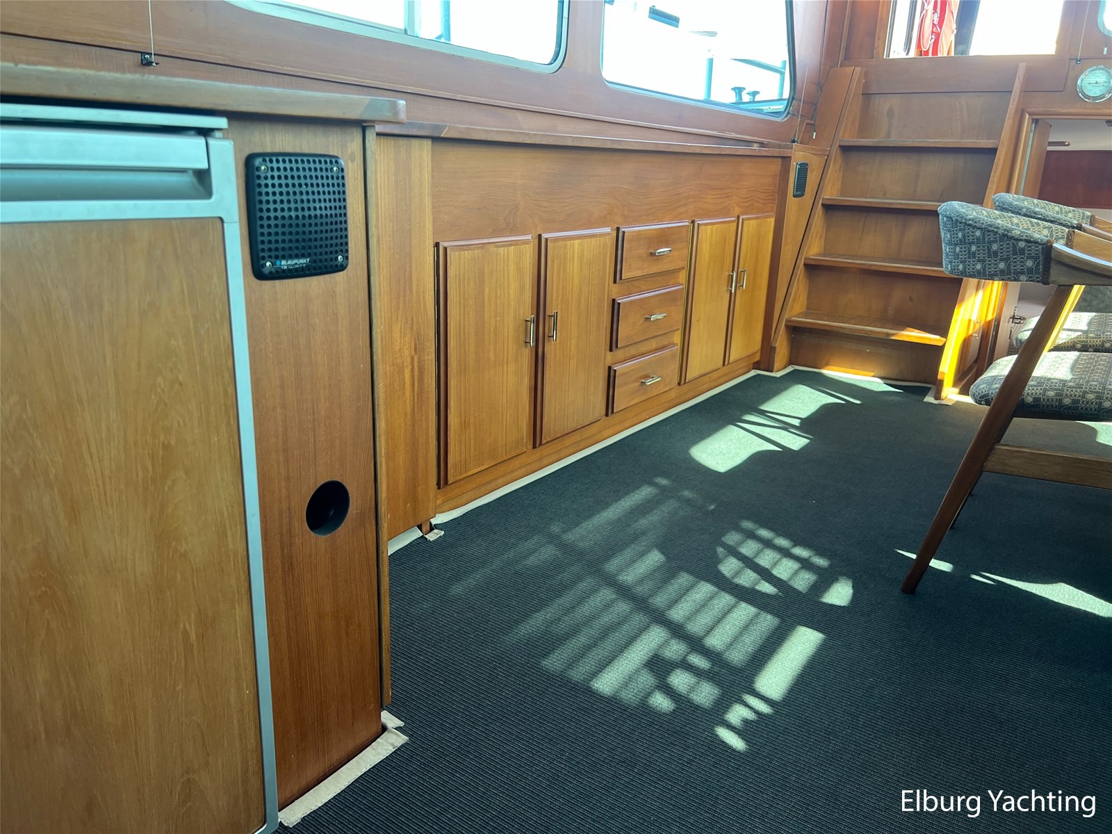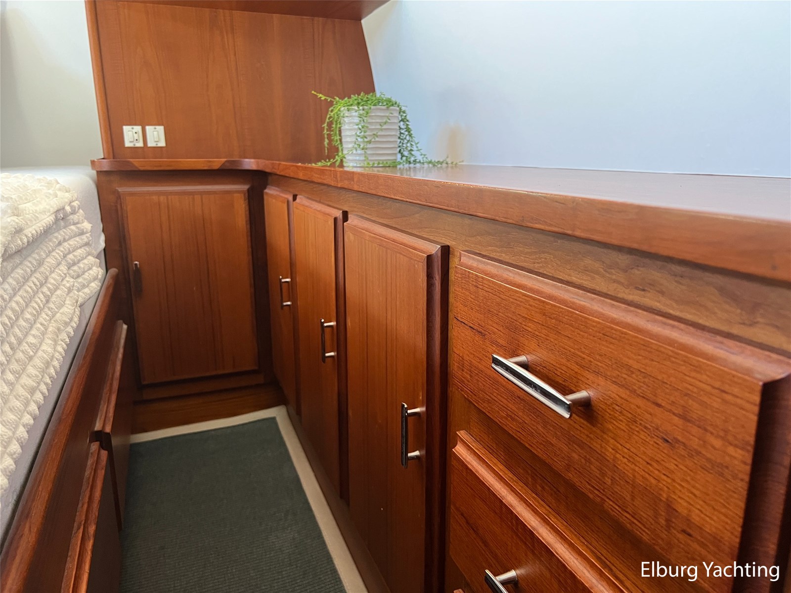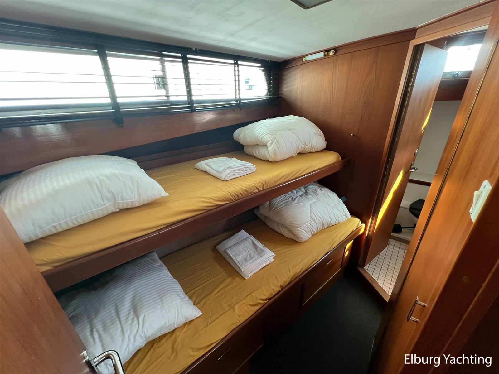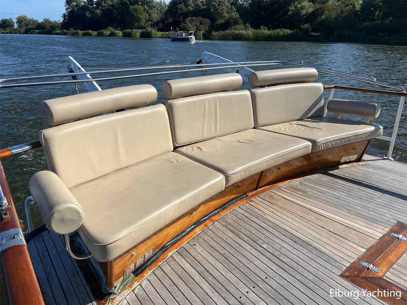 Deze bijzondere Super van Craft is met haar unieke kleurstelling een prachtige klassieke verschijning op het water. Het schip heeft een ruim achterdek met een grote (zomer) bimini en de mogelijkheid om beschut te varen achter de cabrio kap van de stuurstand. De salon is groot genoeg om naast de captain chair met ca. 6 personen plaats te nemen aan de tafel. De laatste jaren is er veel geïnvesteerd om deze Super van Craft weer in een mooie conditie te krijgen, maar er zijn nog klussen aan boord om af te ronden. Het schip is uitgevoerd met: Eigenaarshut met groot vrijstaand bed, grote bimini over achterdek, Sunbrella afdekhoezen voor o.a (bank op achterdek, loopplank, ankerlier), machinekamer geschilderd in 2022 + motoren geschilderd, dynamo's gereviseerd en nieuwe uitlaatdempers geplaatst in 2022, granieten aanrechtblad in keuken met Franke r.v.s. spoelbak, nieuw plafond in keuken met dimbare LED spots, Siemens vaatwasser, zwarte lamellen voor alle ramen in salon, vernieuwde badkamer in eigenaarshut met o.a nieuwe wasbak, nieuwe kraan, nieuwe marmeren topblad, houten opbouw en potdeksels in 2022 volledig kaal gehaald en opnieuw opgebouwd, Jabsco schijnwerper, in 2022 salon dak opnieuw geschilderd, alle chrome details zijn opnieuw verchroomd in 2022, generator vervangen voor een gebruikte Onan 4kW model in 2024, AIS met zichtbaarheid op het plotterscherm. Het teak dek op het schip is nog een punt van aandacht waar de volgende eigenaar mee aan de slag kan. Het is een zeer ruim opgezette Super van Craft met 3 hutten en 2 badkamers.
